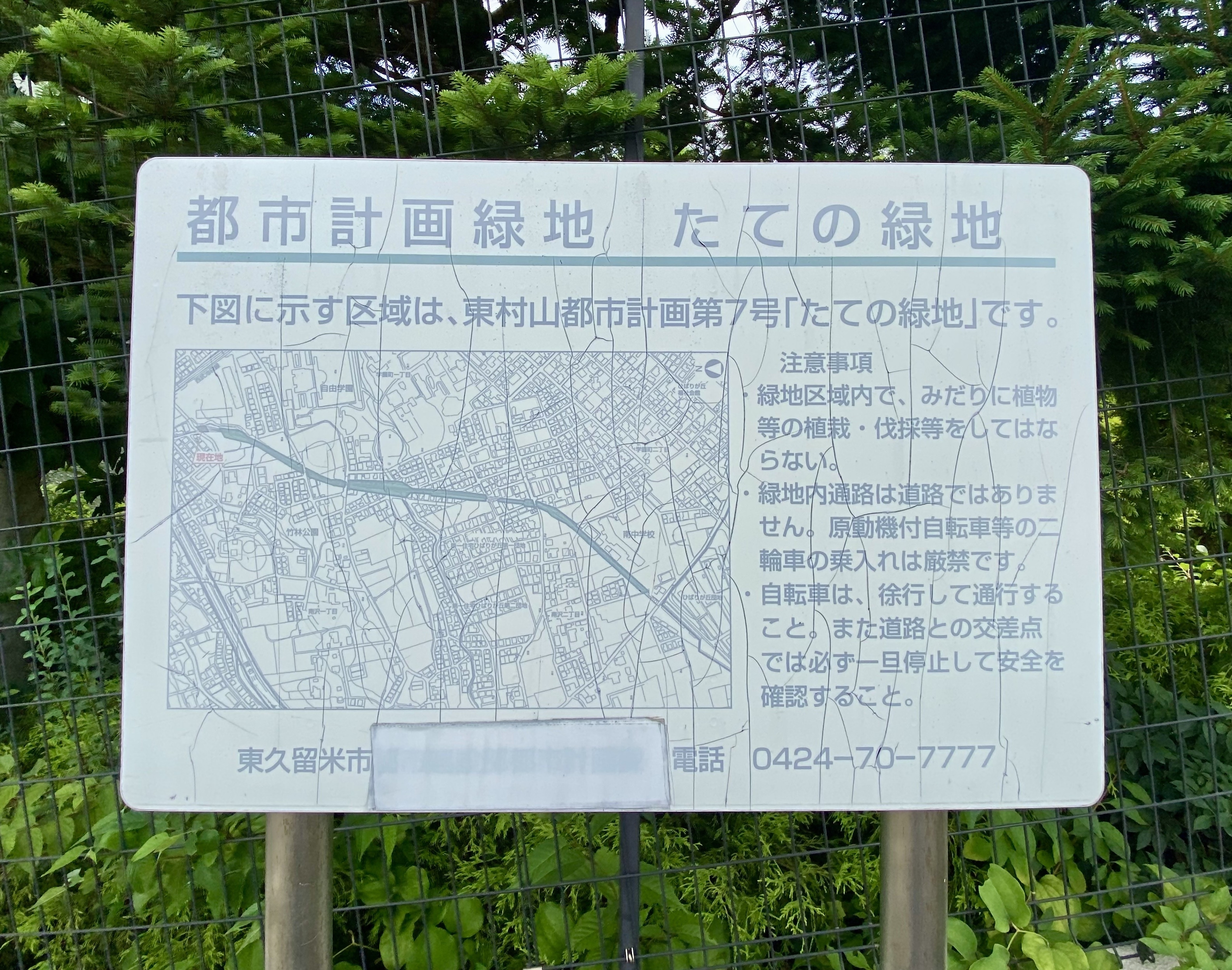 東京都東久留米市のたての緑地(緑道)にある看板。